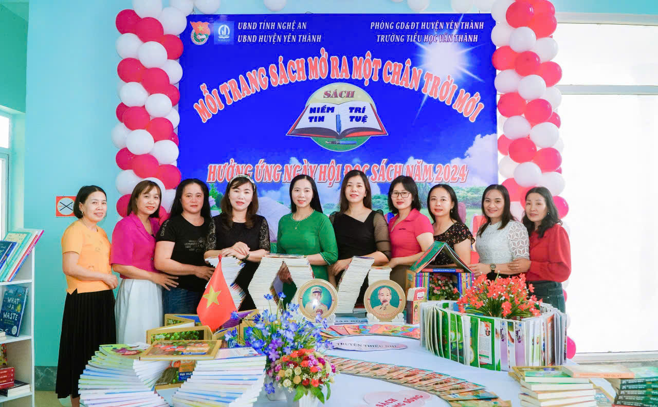 Cán bộ, giáo viên, nhân viên trường tiểu học Văn Thành tích cực tham gia triển lãm sách nhân ngày hội đọc sách năm 2024.